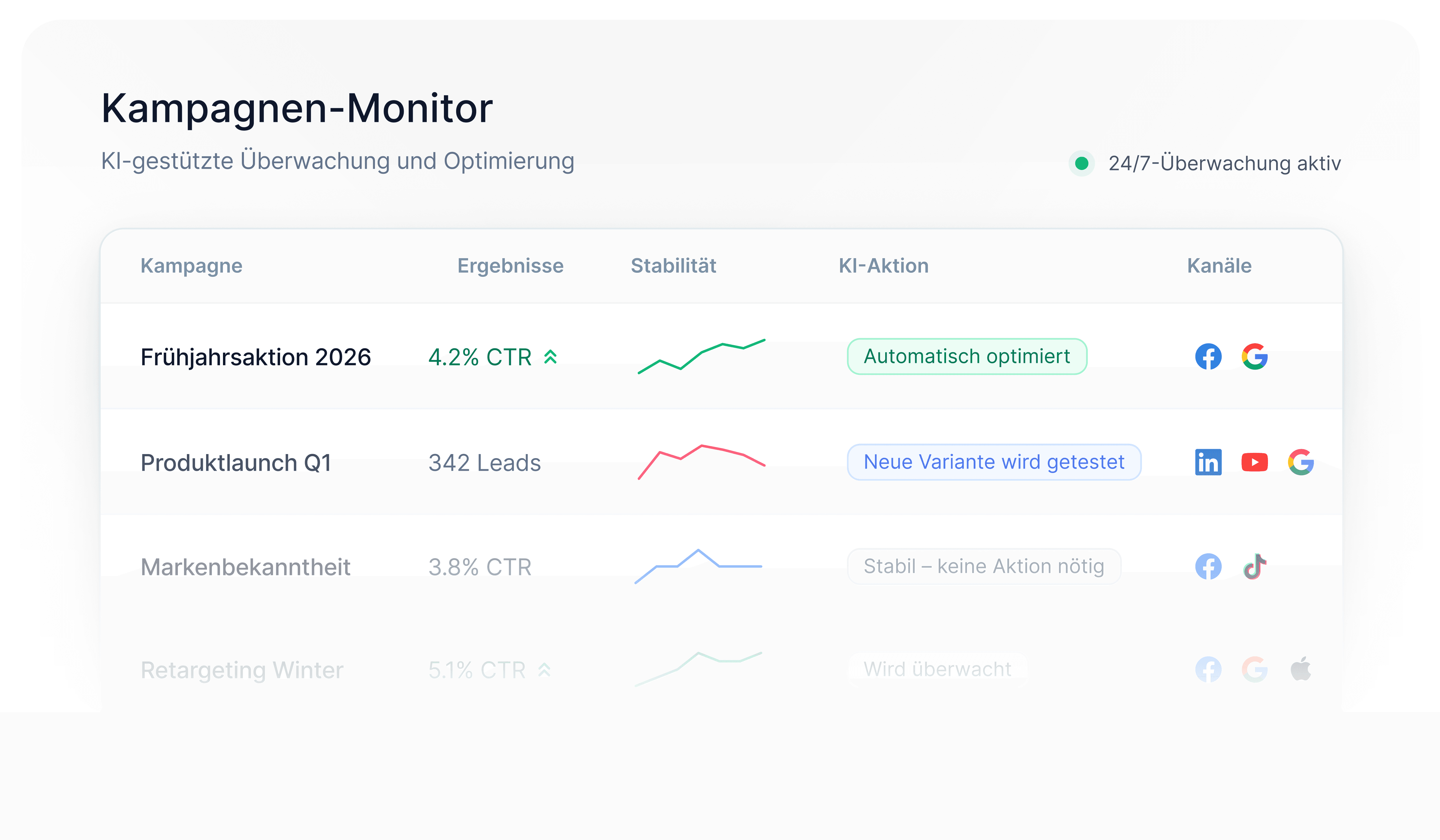 Ich bin kein Marketingprofi, aber mit der KI konnte ich trotzdem problemlos Kampagnen erstellen und optimieren. Schon nach kurzer Zeit kamen die ersten Anfragen rein.